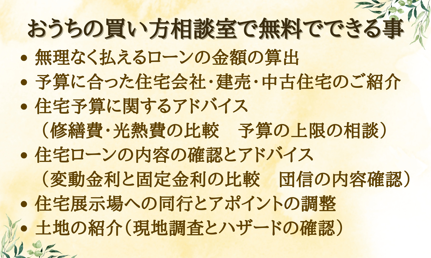 おうちに関するご相談は全て無料です。