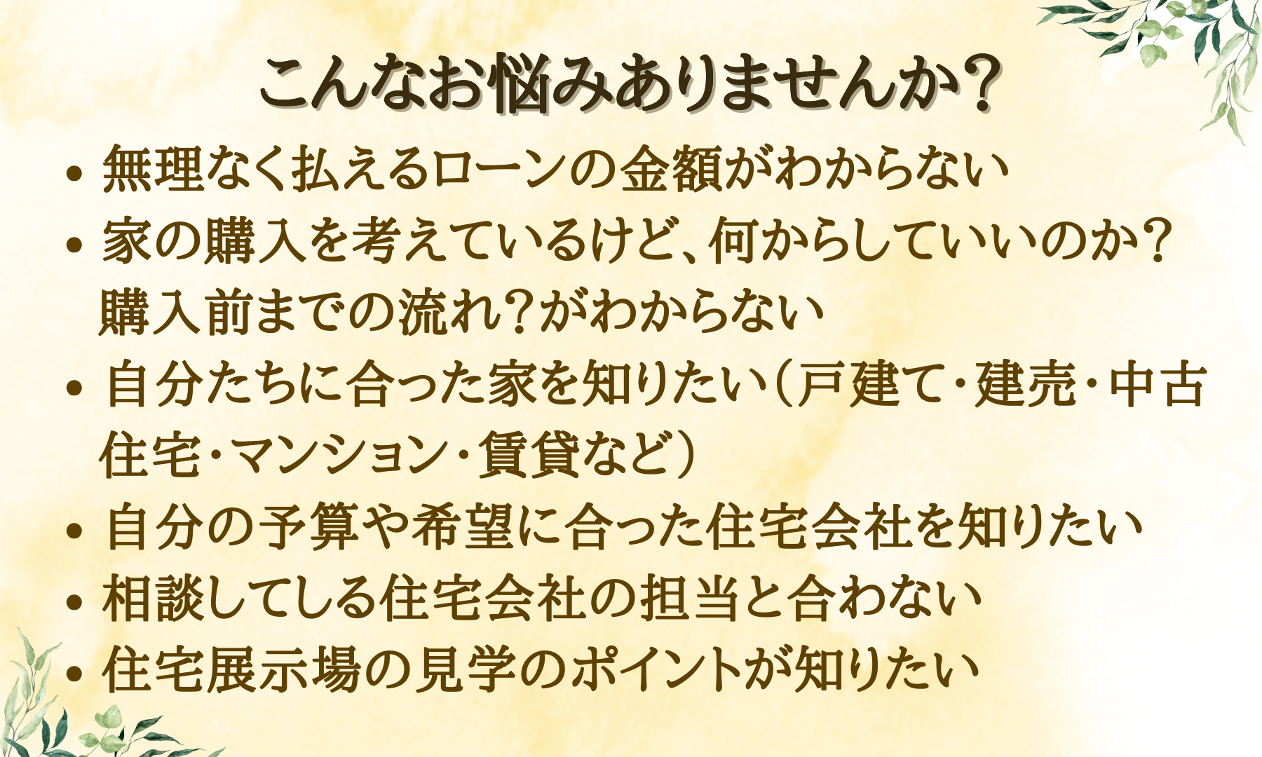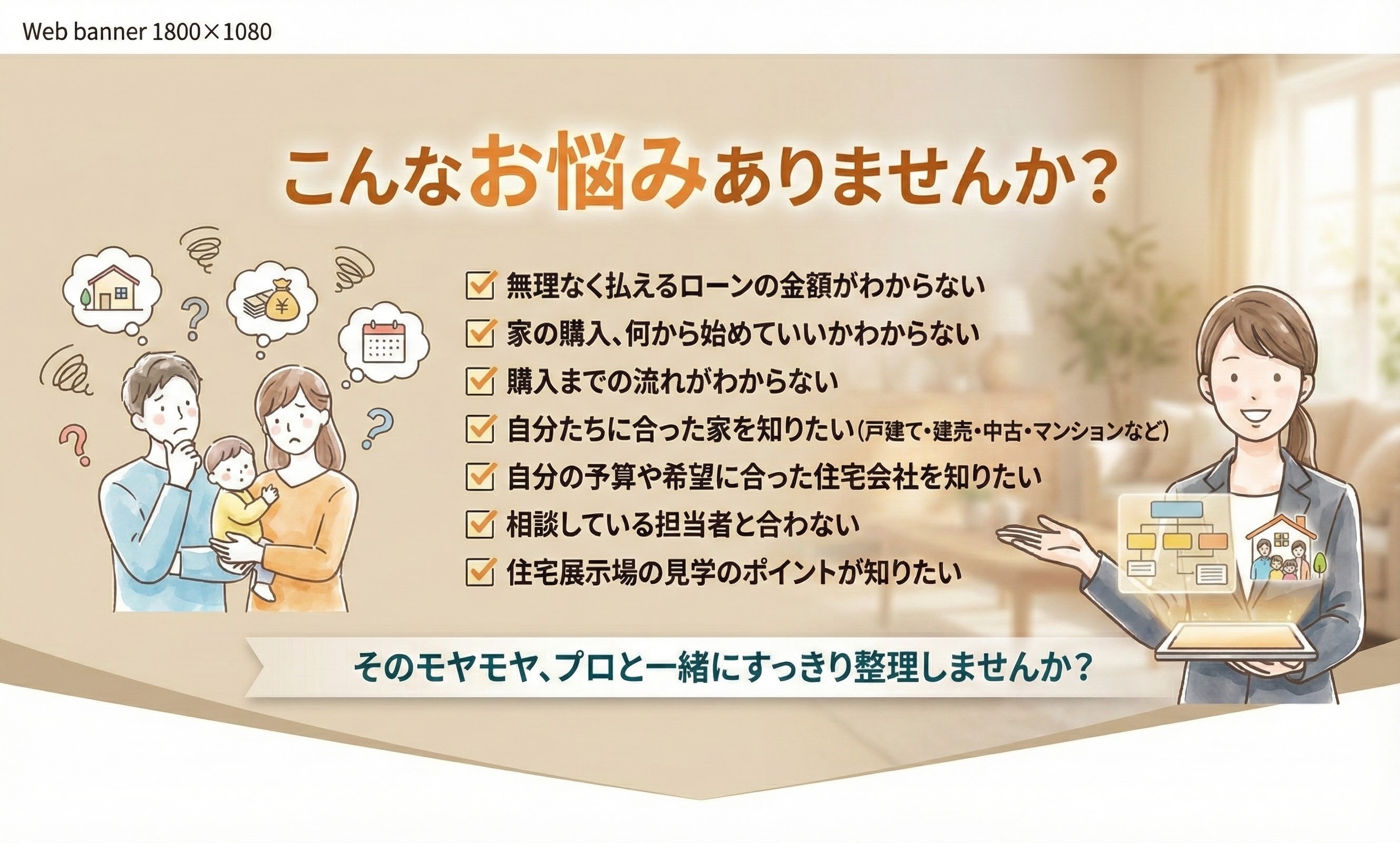 住宅購入時の悩みや不安・モヤモヤを「住宅購入の専門家」がアドバイス。